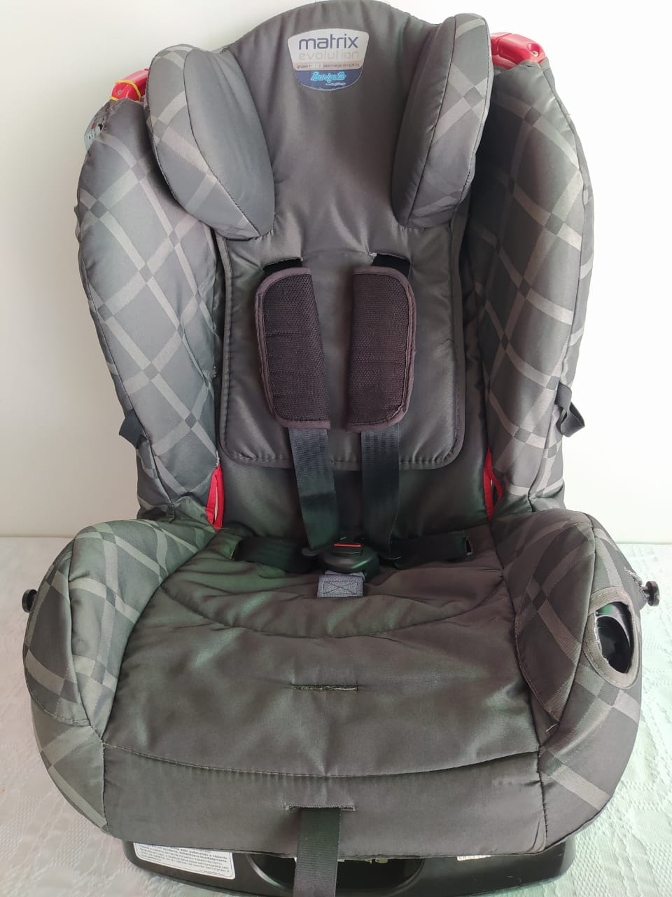 – Cinto de segurança de 5 pontos com protetor acolchoado para os ombros