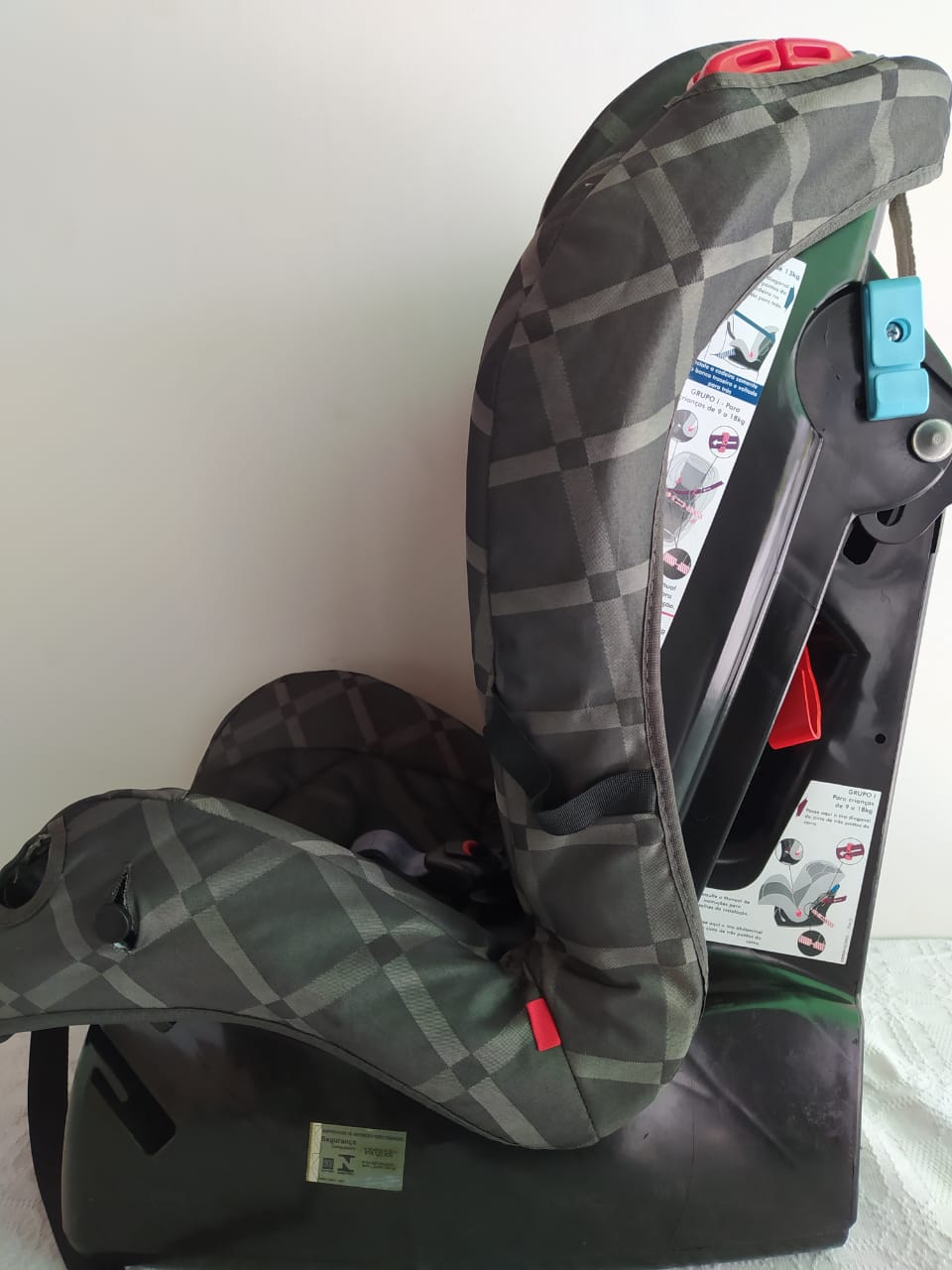 – Cinto de segurança se ajusta automaticamente a altura da criança, acompanhando a regulagem do apoio para a cabeça.