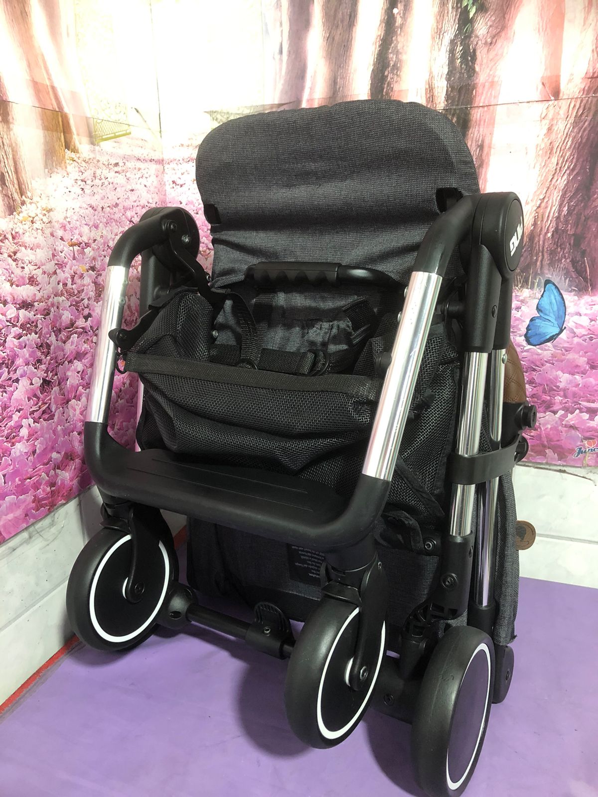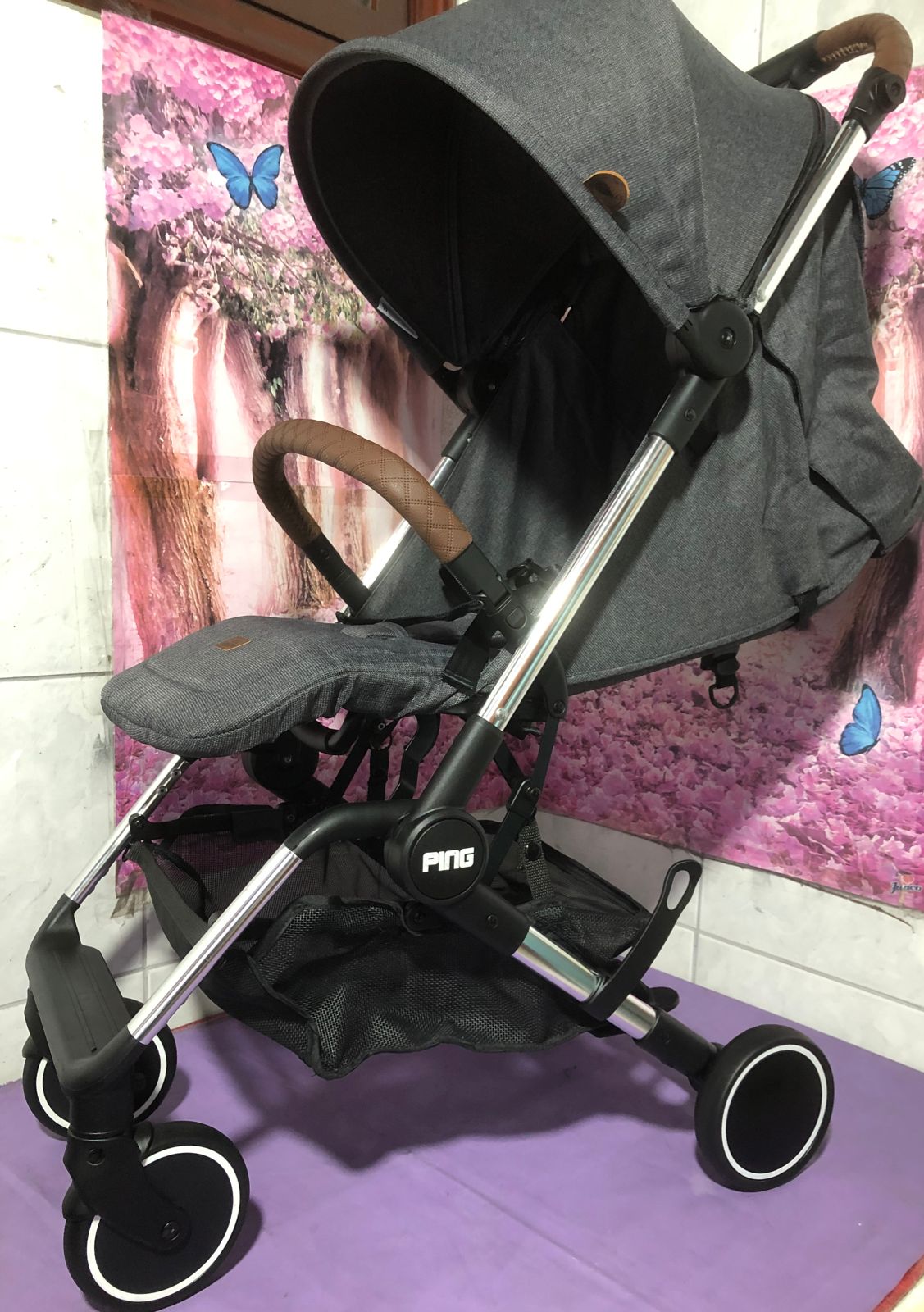 A Pintura eletrostática da estrutura do Ping nesta versão CROMADA é um dos principais diferenciais da linha Diamond. Conta com detalhes da roda esportivo e as manoplas em acabamento especial no matelassê todo costurado a mão.
